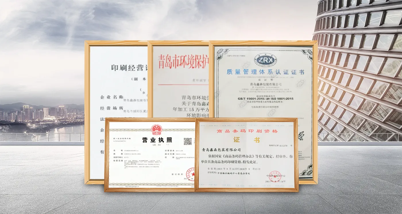 2. Szakmai tanúsítványok: A cég egymást követően szerzett nemzeti áruvonalkódnyomtatási képesítési tanúsítványokat, minőségirányítási rendszer tanúsítványokat (GB/T 19001-2016/ISO 9001:2015), környezetirányítási rendszer tanúsítványt (ISO 14001:2015), nyomdai szakképesítési engedélyeket és egyéb releváns engedélyeket. Kiváló eredménnyel teljesítette a környezetvédelmi osztály környezeti hatásvizsgálati jóváhagyását is. 2023-ban a vállalat elnyerte a "Shandong Province Excellent Printed Products Award" díjat az öntapadós címkével ellátott orvosi hamisítás elleni címkéjéért, ezzel egyike lett azon kevés öntapadó nyomdaipari vállalatoknak a régióban, amelyek megkapták ezt a kitüntetést.